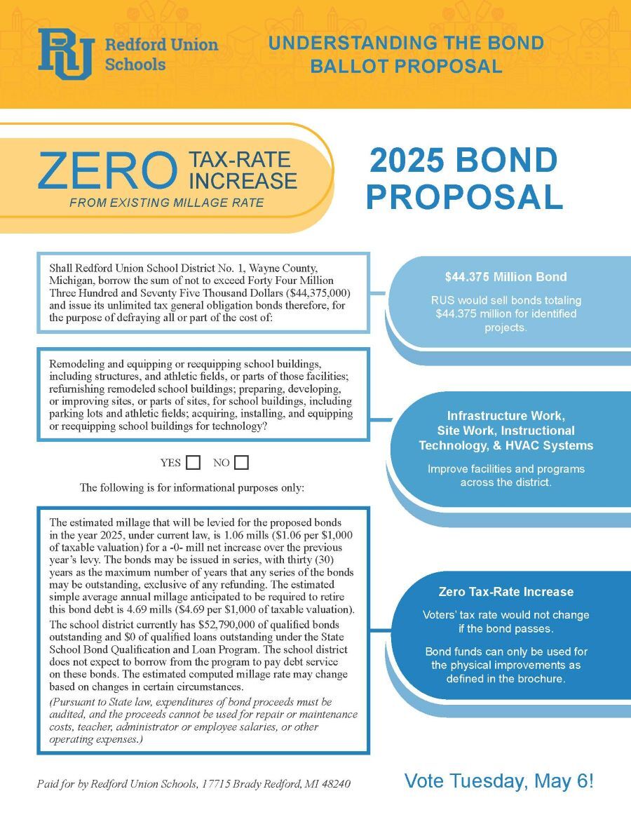 Thank you to the Redford Union School District community for passing our 2025 Bond proposal. We are grateful to continue to enhance the learning environment for both students and staff members.