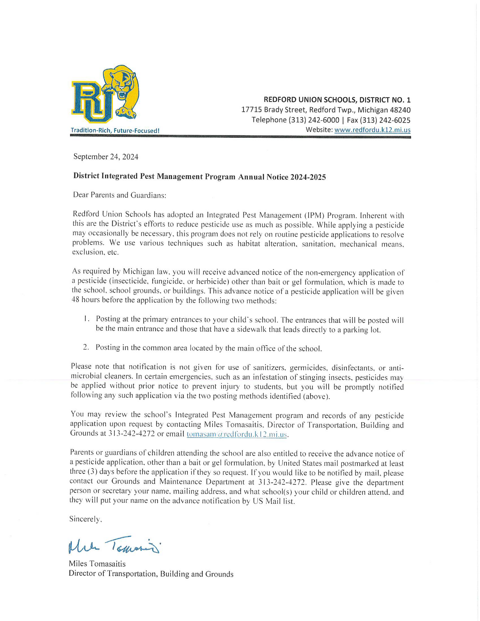 2025-2026 District Integrated Pest Management Program Annual Notice